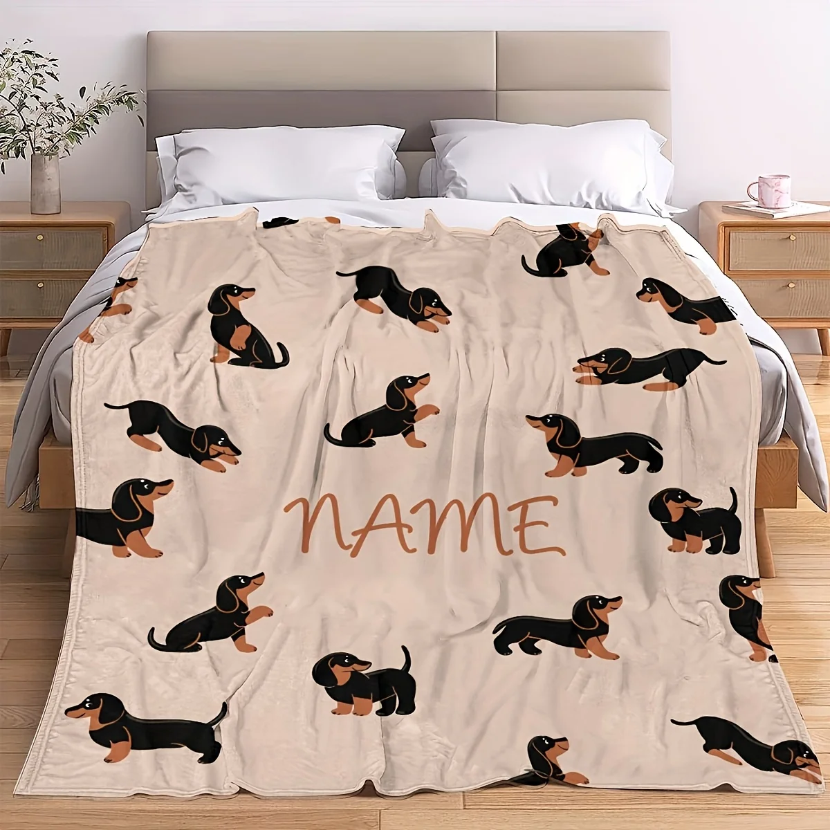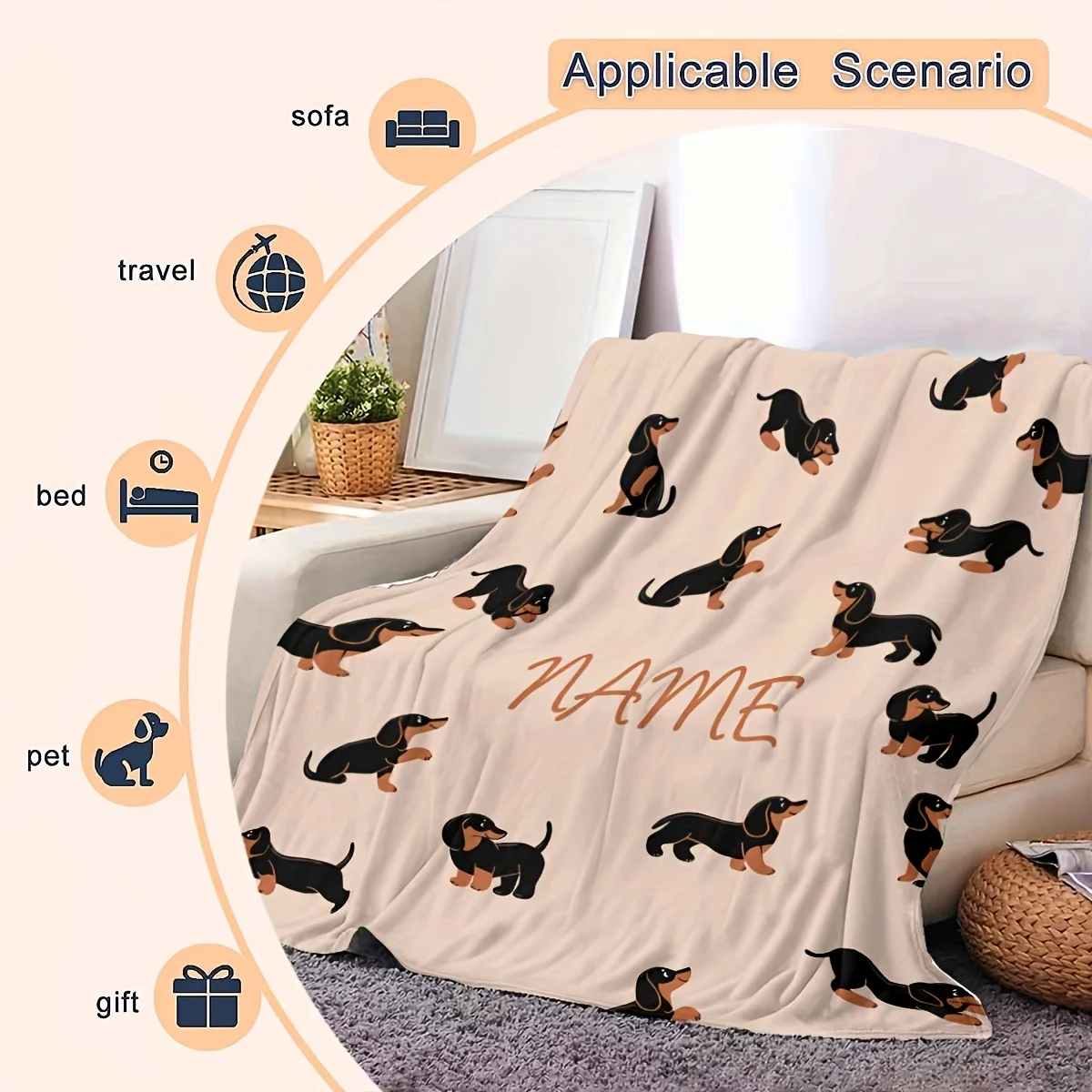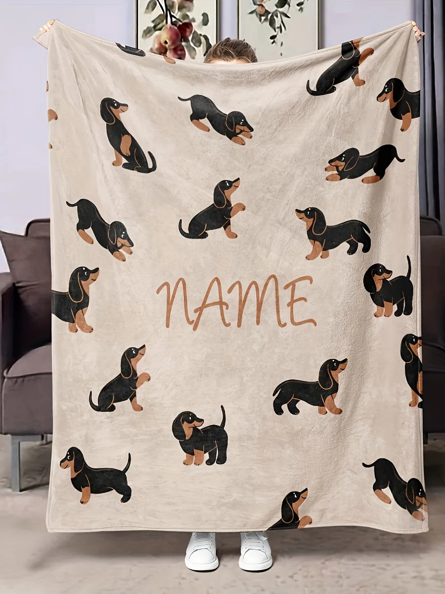 1pc custom name blanket, custom name dachshund flannel blanket soft, warm and comfortable, suitable for sofa beds